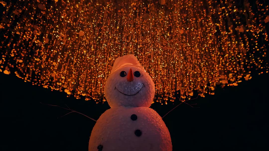 Illuminated Snowman under Radiant LED Canopy in Gallery Video Video