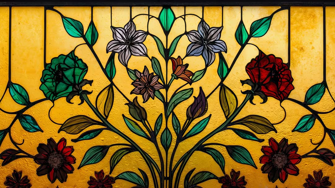 - Illuminated Stained Glass with Botanical Designs and Historic Charm