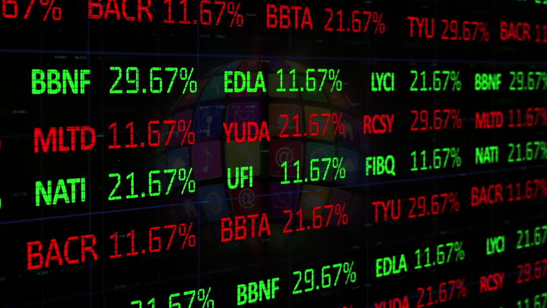 Animated view of stock market tickers seamlessly integrating with a digital representation of earth, symbolizing global technology and financial trading networks. Perfect for use in presentations focusing on international finance, technology advancements in trade, or as a dynamic backdrop for discussions about global economic trends.