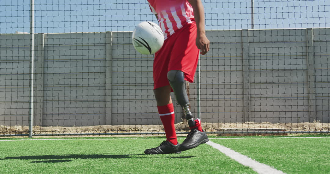 - Inclusive Sports: Soccer Player with Prosthetic Leg Practicing