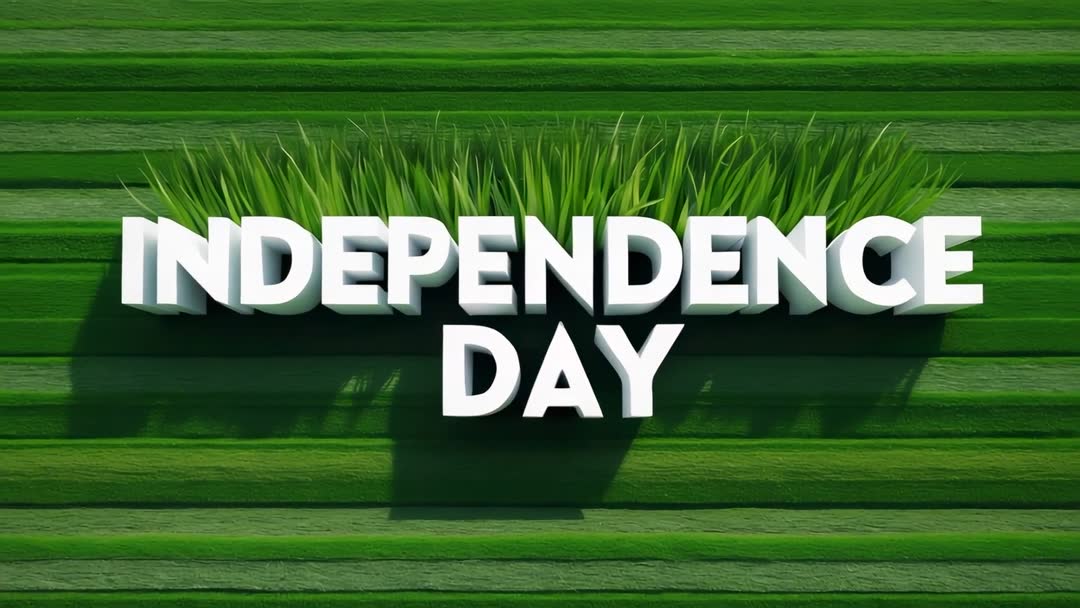 Independence Day Text on Vibrant Striped Lawn with Grass Effect Video