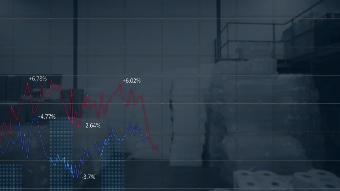 A visualization showcasing the use of data analysis in a modern warehouse. The overlapping graphs depict trends in operational metrics, highlighting cost control and process improvement. Warehouse management, supply chain evaluation, and logistics strategy discussion can benefit from this particular visual. Ideal for business reports, technology courses, and keynotes on efficient warehouses and production settings.