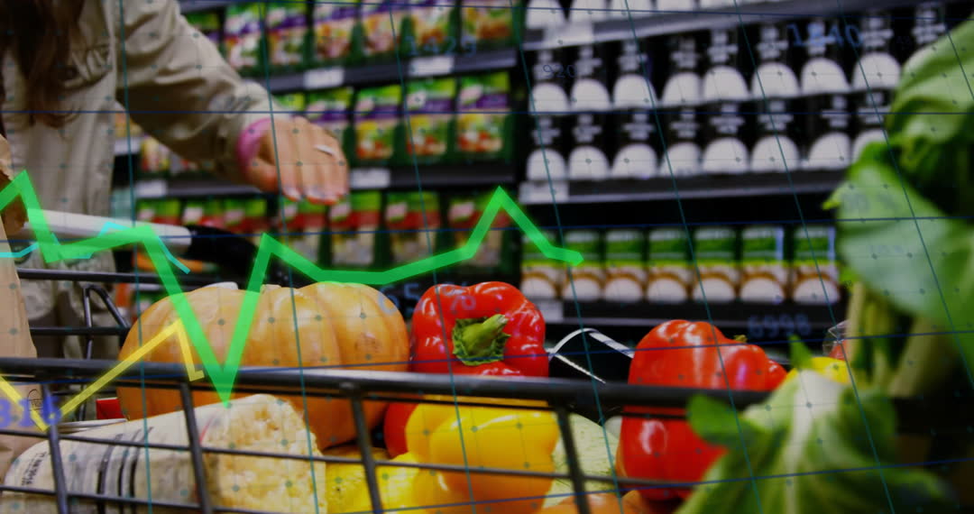 - Inflation Impact on Grocery Shopping with Data Graph Overlay