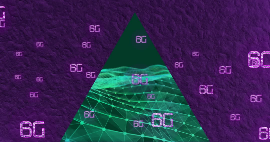 This visual features digital representations of '6G' amidst abstract networking patterns, with a triangulated centerpiece conveying an atmosphere of advancement in communication technologies. It fits perfectly in tech articles, blogs, or advertisements focused on future telecommunications or data networks, highlighting innovation and speed in modern connectivity.
