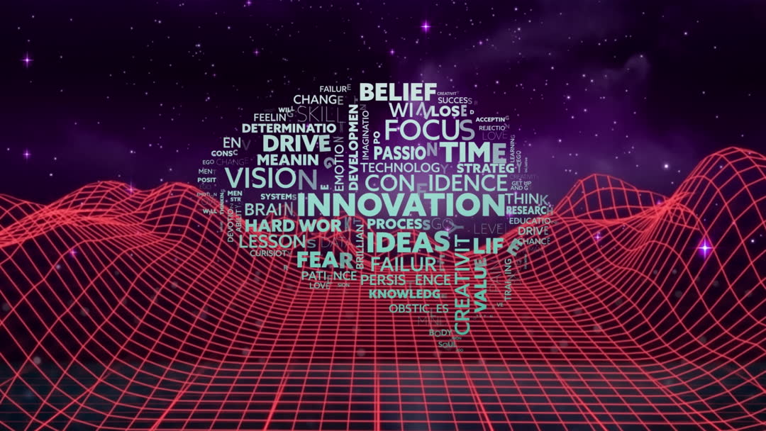 Innovative Brain Made from Business Terms in Futuristic Metaverse Video
