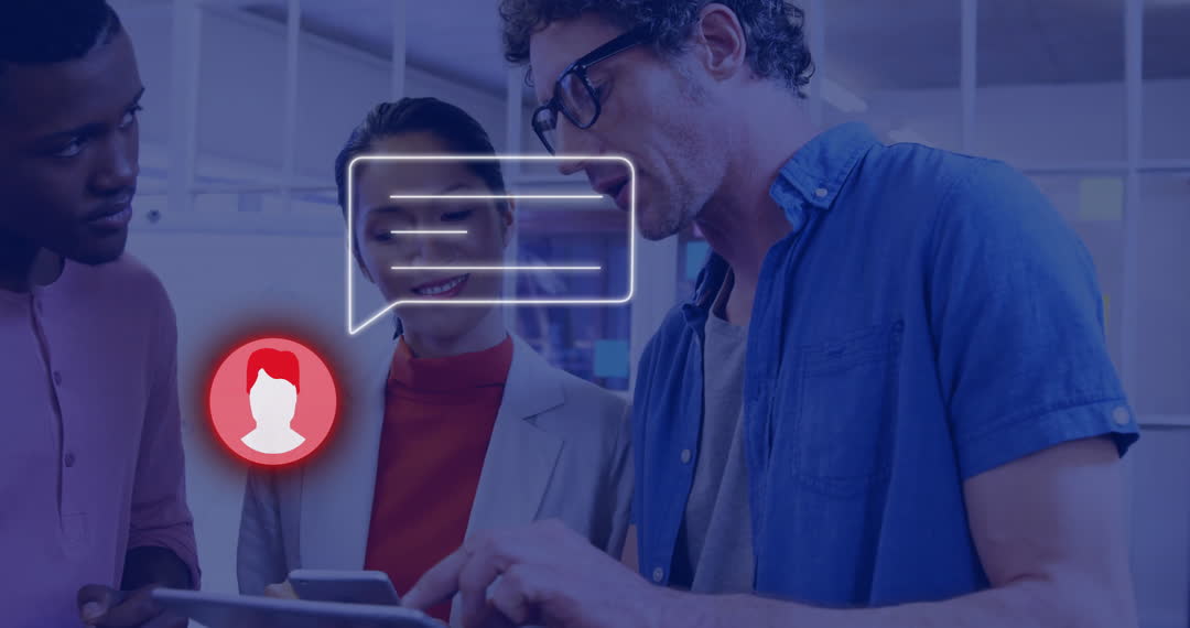 This scene shows a diverse group of business professionals engaging in discussions, enhanced by the overlay of media icons. It highlights modern communication and digital innovation in a work environment. Ideal for illustrating technological advancements in collaboration apps, new business ventures, or technology-driven teamwork solutions.