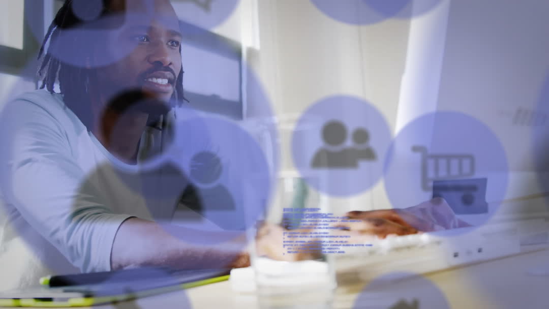 - Innovative Business Technology: Man Using Computer with Digital Icons