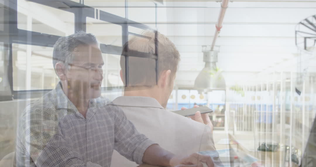 - Innovative Caucasian Businessmen in Modern Office with Digital Overlay