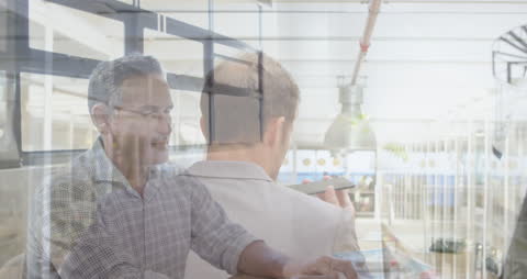 Innovative Caucasian Businessmen in Modern Office with Digital Overlay Video