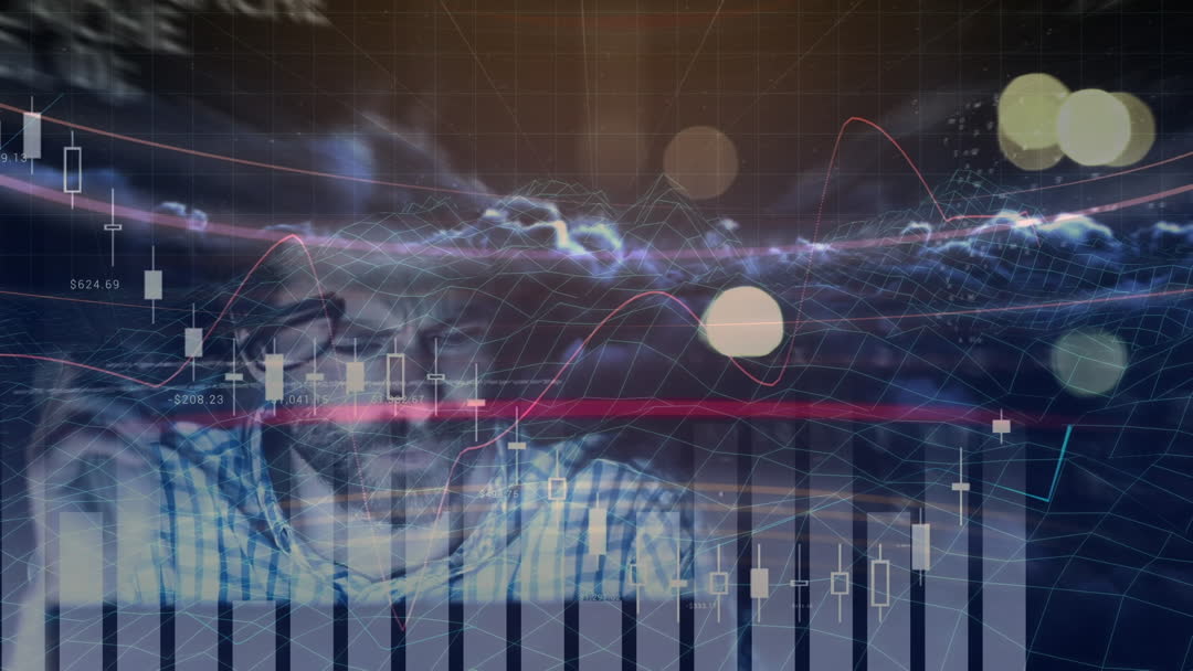 Image depicts an advanced integration of data processing with cloud computing elements, showing a digital interface filled with charts and graphs. Useful for illustrating modern technology solutions in business, information technology, and financial analytics. Perfect for showcasing connectivity and data analysis services in marketing materials or technology presentations.