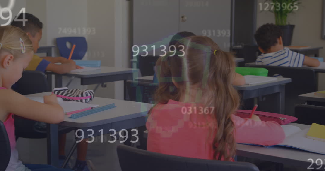 Wholesome scene captures diverse schoolchildren engaged in learning within a cutting-edge educational environment enhanced by digital technology. Data overlays symbolize the integration of digital tools in education, promoting global connectivity and interactive learning. Perfect for illustrating concepts of modern education, technological advancements in schooling, and progressive teaching methods. Ideal for educational articles, tech presentations, and innovative school programs.