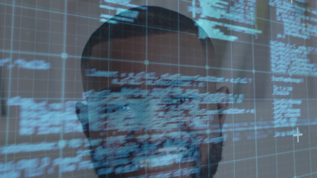 The scene portrays a joyful African American doctor interacting with digital data displayed on a transparent screen. This video emphasizes the intersection of technology and healthcare, showcasing futuristic medical practices. Perfect for illustrating medical advancements, tech-infused healthcare solutions, or innovative digital tools in the medical industry.