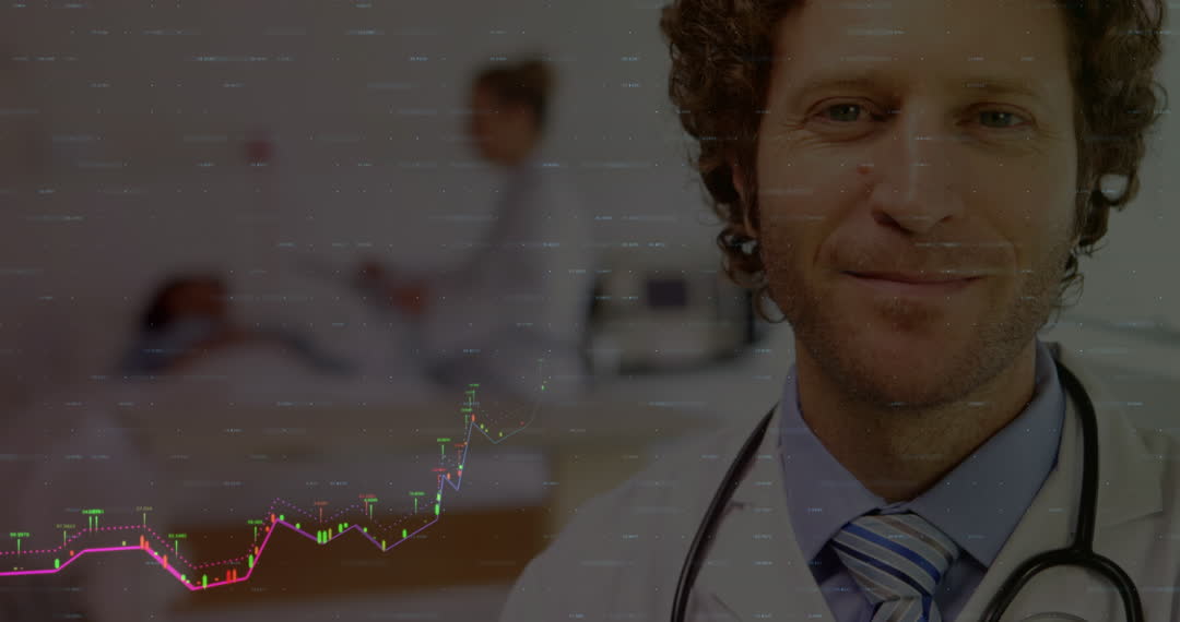 Image depicts a doctor with a stethoscope, softly conveying healthcare advancements with a digital data overlay. Blurred background features a patient, highlighting real-time analysis. Perfect for promoting telemedicine, health technology solutions, or medical data analytics projects.
