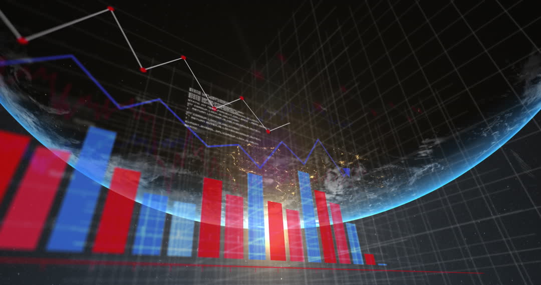 Innovative Financial Data Visualization Against Globe Video