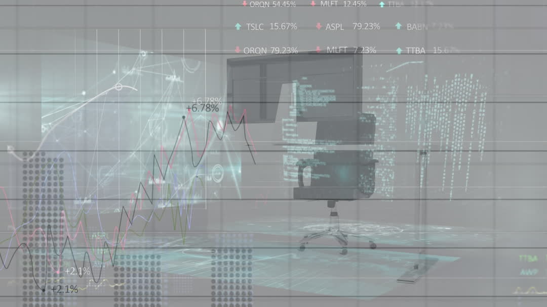 Innovative Financial Data Visualization in Modern Office Workspace Video