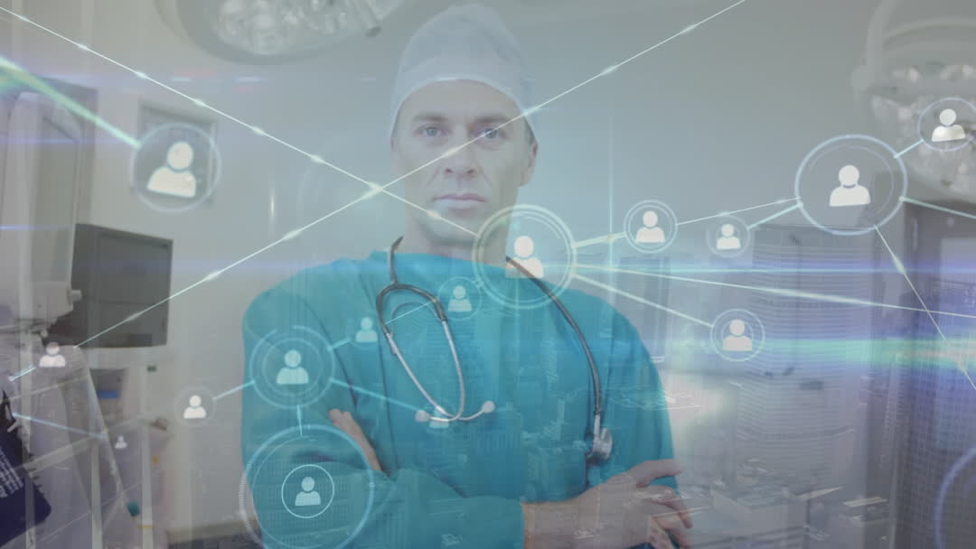 Illustrating the intersection of healthcare and technology, this video features a doctor overlayed with network connection symbols, suggesting digital healthcare advancements. Ideal for promoting telemedicine, healthcare networks, or technology in medicine. It visually represents global connectivity and innovation in the medical field.