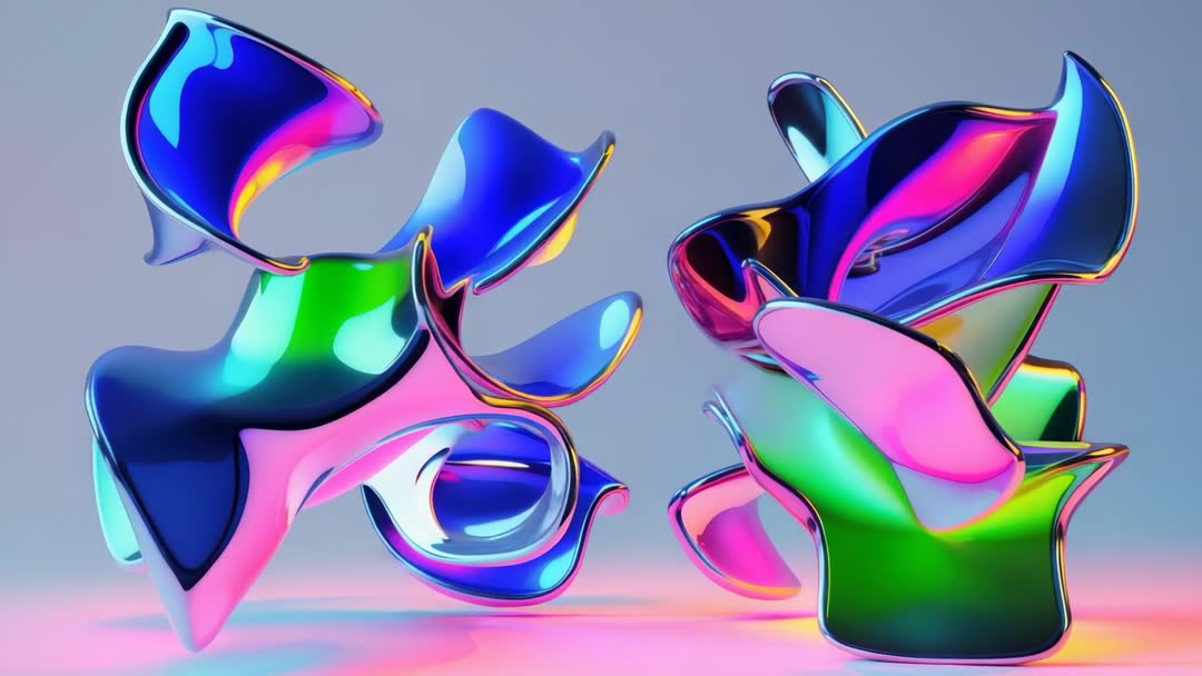 AI Generated Video. Colorful metal abstract sculptures exhibit innovative design with their striking rainbow facets. Ideal for contemporary art enthusiasts, design agencies seeking to inspire modern art projects, or educational study of light interaction with metallic surfaces. Also suitable as vibrant background or promotional material for art galleries focusing on innovative installations.