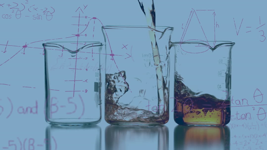 Engaging visual representation blends chemistry beakers with interactive mathematics animation. Great for educational blogs, STEM content, and technology presentations to illustrate innovative scientific concepts and global research skills. Appeals to educators and students for its creative and interactive design, highlighting concepts in science and math fields.