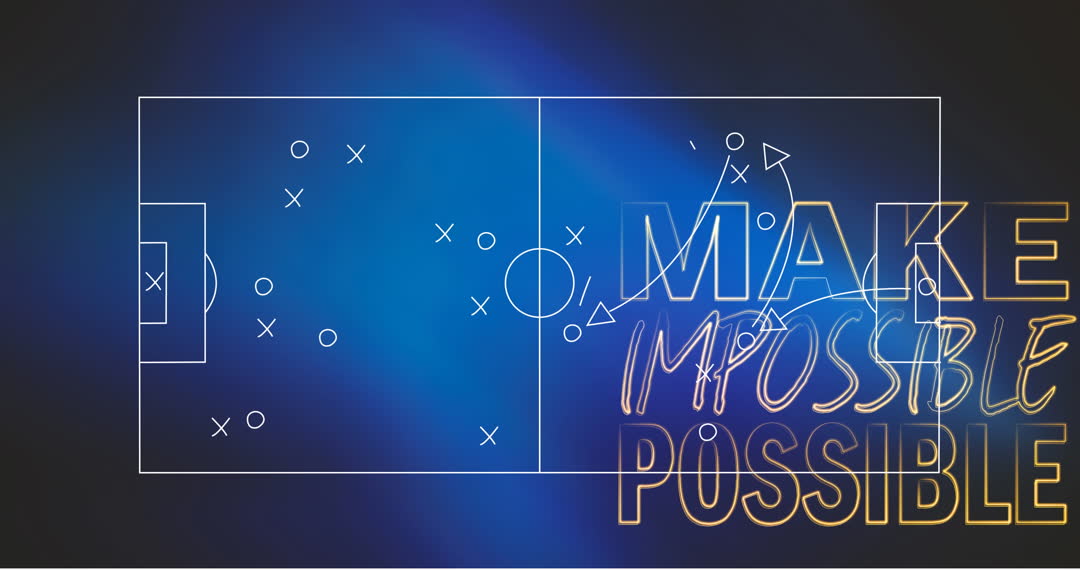 Digital schematic showcasing soccer tactics with inspiring phrase 'Make Impossible Possible.' Ideal for materials focusing on strategies, team dynamics, or motivation set within sports contexts. Useful for sports coaching presentations, motivational campaigns, and innovative leadership discussions.