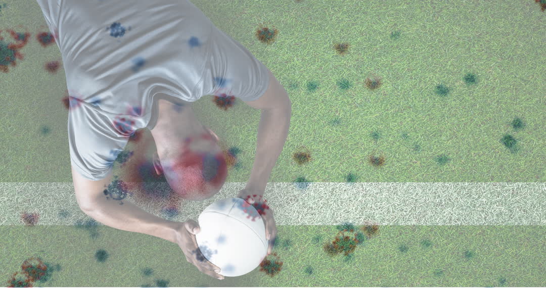 Animated video showcasing innovative technology used in rugby, featuring colorful digital interface elements over a male athlete on the field. Perfect for illustrating the integration of technology in sports, showcasing future sports innovations, or highlighting the modern digital transformation in athletic training and performance analysis.