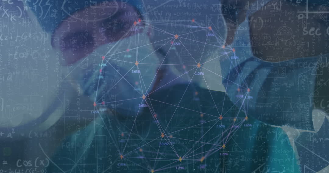 Surgeons in masks examine interconnected digital data, illustrating integration of technology in modern medicine. This video can be used to represent technological advancements in healthcare, data-driven decision making, or digital transformations in medical settings. Ideal for health-related technology articles, medical research publications, and digital innovation presentations.