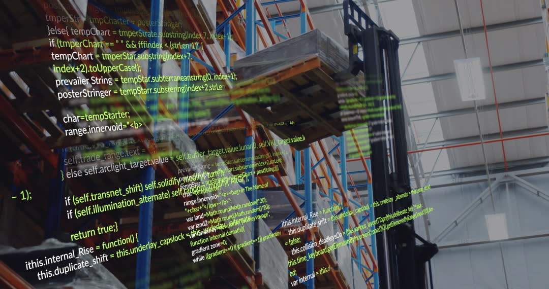 Data projections over a warehouse scene indicating a strong connection between technology and industrial storage. Illustrates innovation in logistics and supply chain management. Useful for articles or presentations on digital transformation in industry, warehouse automation, and how data analytics is revolutionizing logistics.