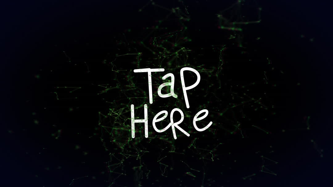 Dynamic and engaging dark background featuring the phrase 'Tap Here' in bold white letters, surrounded by abstract green cybernetic lines and numbers. Perfect for tech companies, digital platforms, or application loading screens aiming to capture attention and guide user interaction.