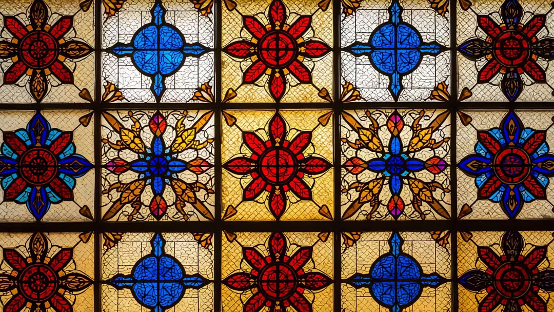 - Intricate Colorful Glass Mosaic with Geometric Patterns