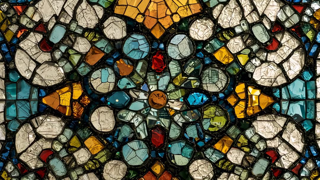 - Intricate Floral Mosaic on Stained Glass Creating Stunning Visual Art
