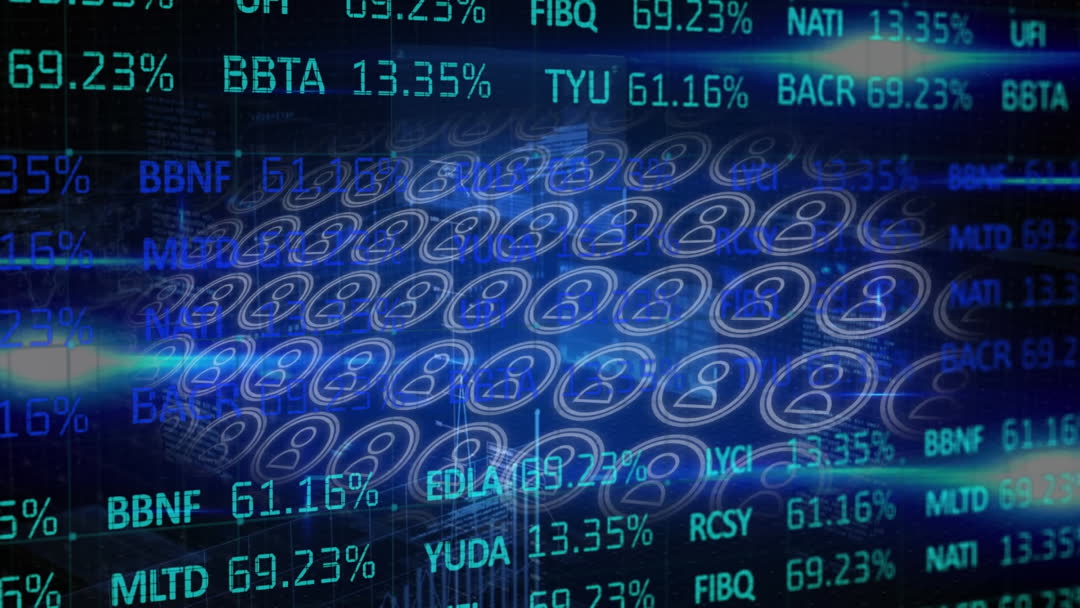 Investment and Technology Fusion with Profile Icons and Trading Board Video