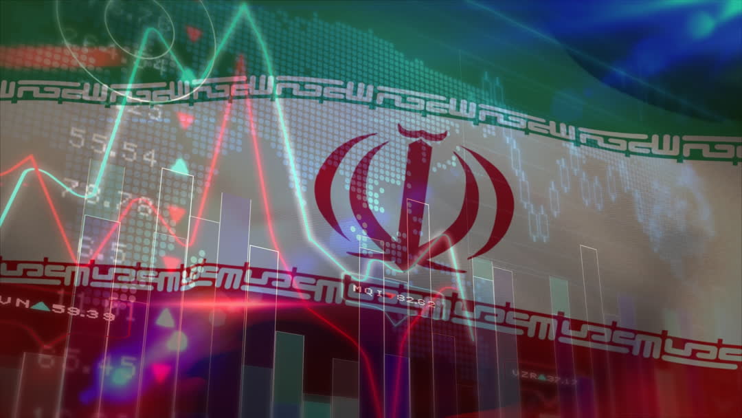 - Iranian Flag with Overlay of Financial Data and Graphs