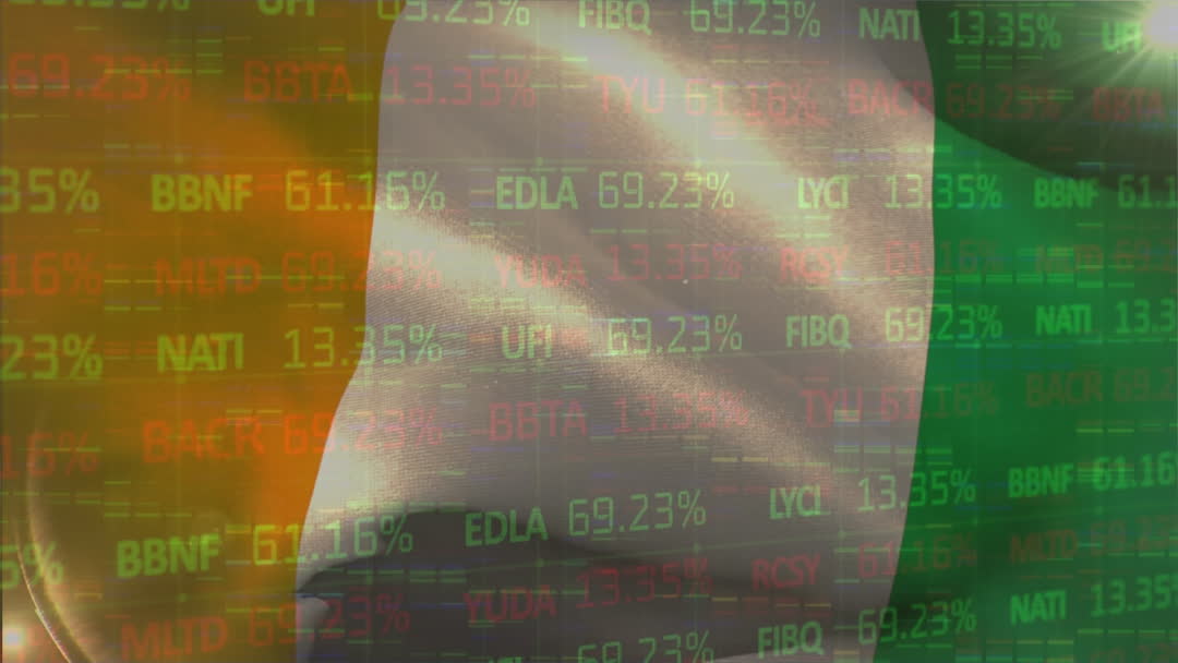 Ivory Coast Flag with Digital Stock Market Overlay Video