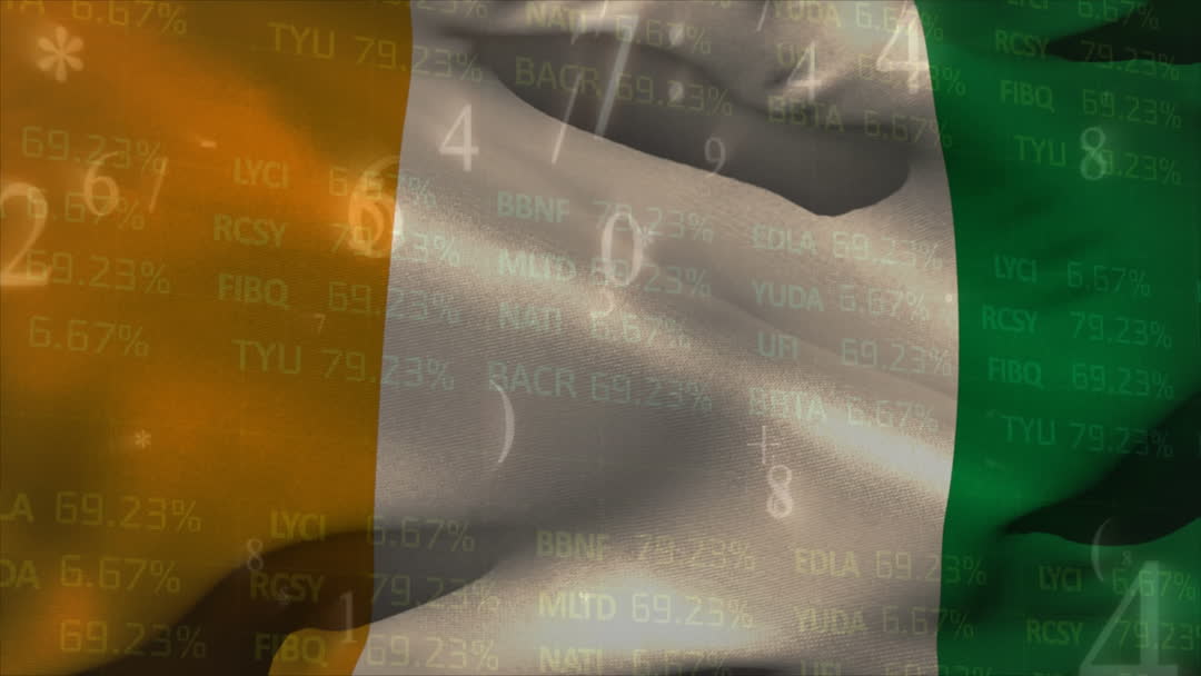 Ivory Coast Flag with Stock Market Data Overlay Video