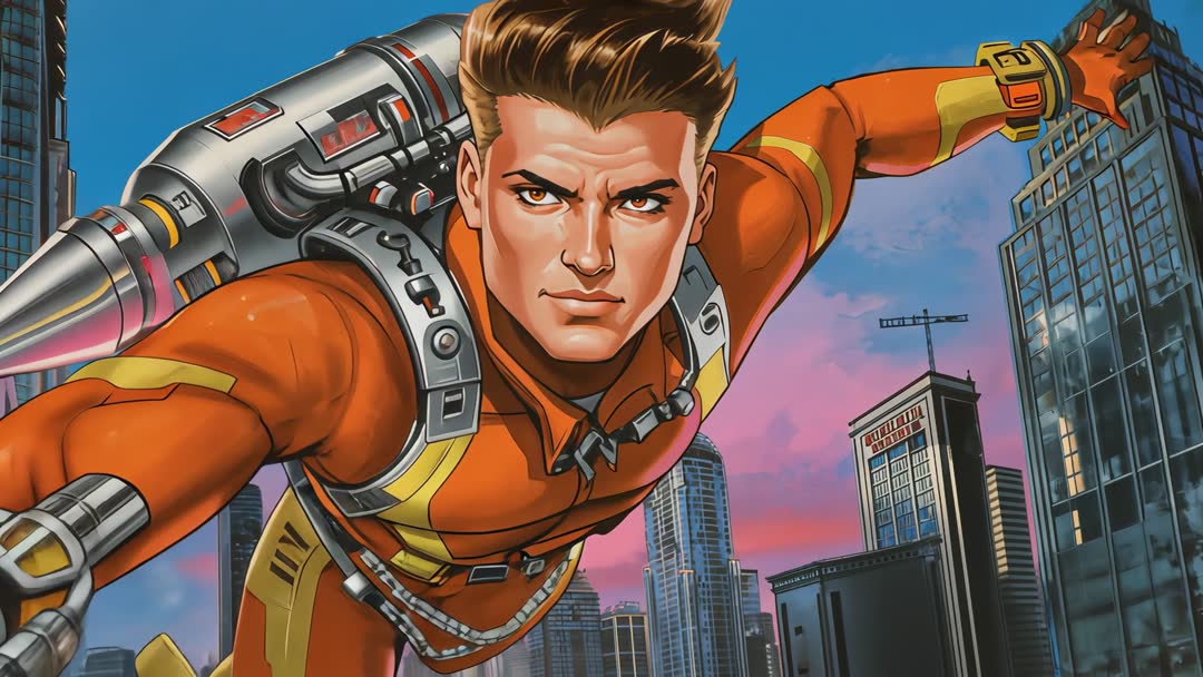 AI Generated Image. Featuring jetpack pilot flying toward camera over neon skyscrapers at sunset, firing wrist thruster while wearing orange flight suit. Capturing close-up dynamic perspective, delivering strong sense of speed, altitude, and imminent impact. Working well for title sequences, action trailers, game intros, social media promos, advertising campaigns, and editorial stories about futuristic tech and urban adventure. Suggesting quick-cut editing, motion blur, warm color grade with magenta sky accents, and synth-driven soundtrack to amplify cinematic momentum. Providing versatile clip for hero spotlight, product reveal, tech concept, or comic-style storytelling.