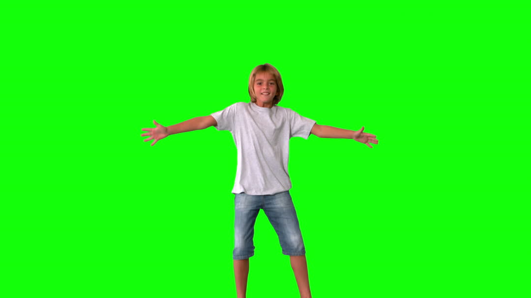 - Joyful Boy Jumping with Excitement on Green Screen Background