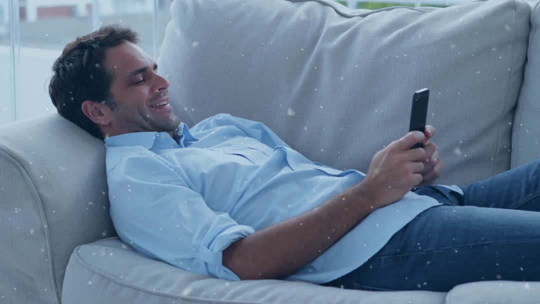 <a target="_blank" href=https://pikwizard.com/video/joyful-man-relaxing-on-couch-using-smartphone-with-falling-snow/9fdf20a32d844ca2c3633d460da852a3/>PikWizard</a>