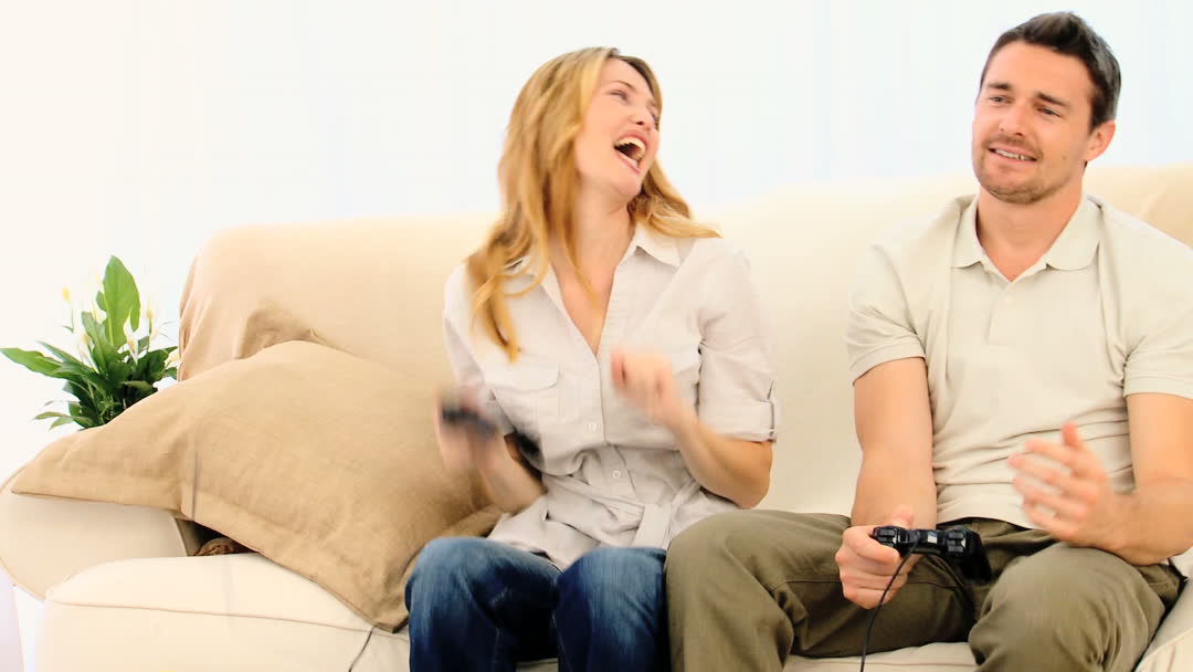 Joyful Moments: Couple Enjoying Video Game Together Video