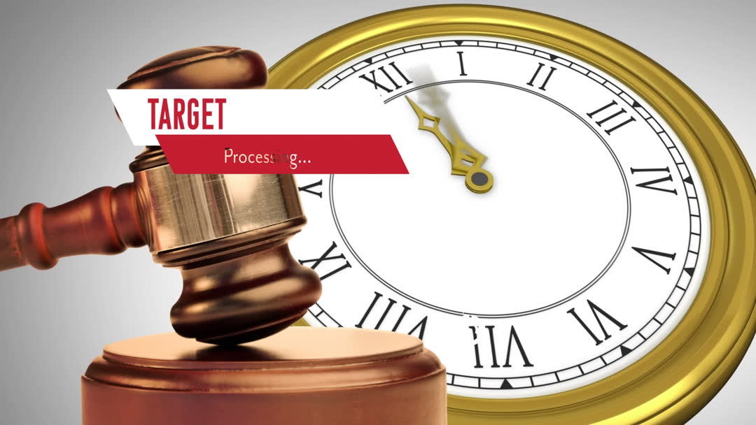 Judicial Concepts with Gavel, Clock and Target Processing Graphic Video