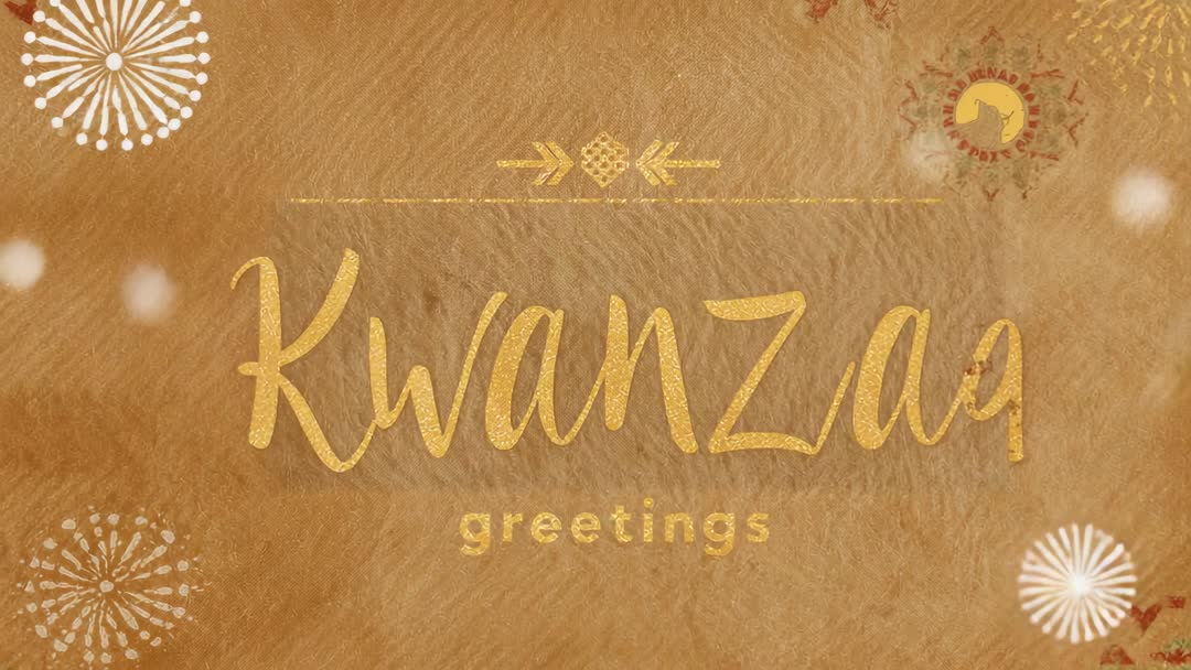 - Kwanzaa greetings lettering shimmering in gold foil on warm-brown textured greeting loop