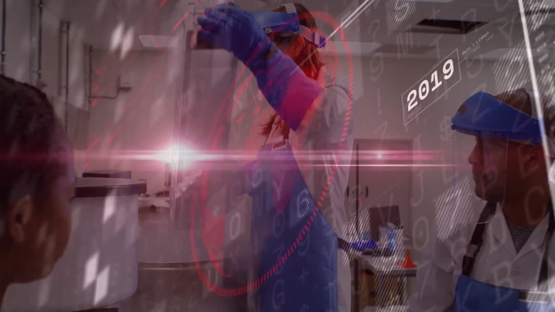 Lab Scientist Handling Test Tube with Digital Data Overlay Video