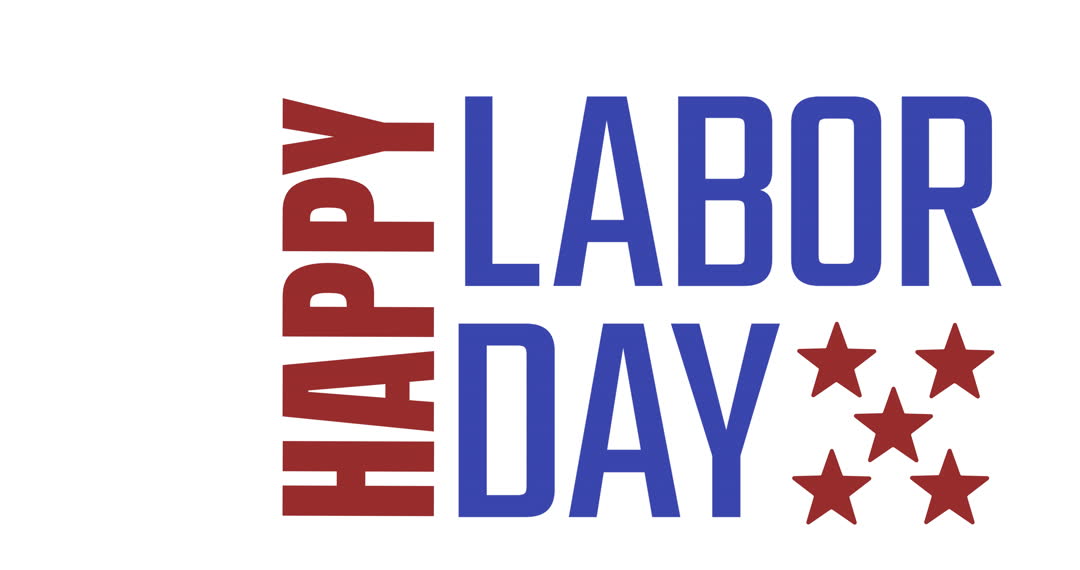 Graphic featuring bold 'Happy Labor Day' text with five stars in a red, white, and blue theme perfect for celebrating the American holiday. Suitable for use in promotional materials, social media posts, invitations, or posters highlighting Labor Day events and celebrations.