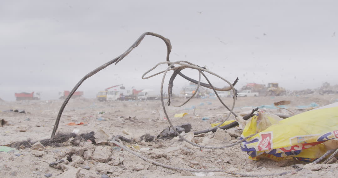 Depicts vast area covered with piles of trash and rubbish. Wires and garbage visibly demonstrate pollution challenges. Suitable for topics on environmental awareness, highlighting waste management procedures, or education about recycling practices and eco-friendly initiatives.