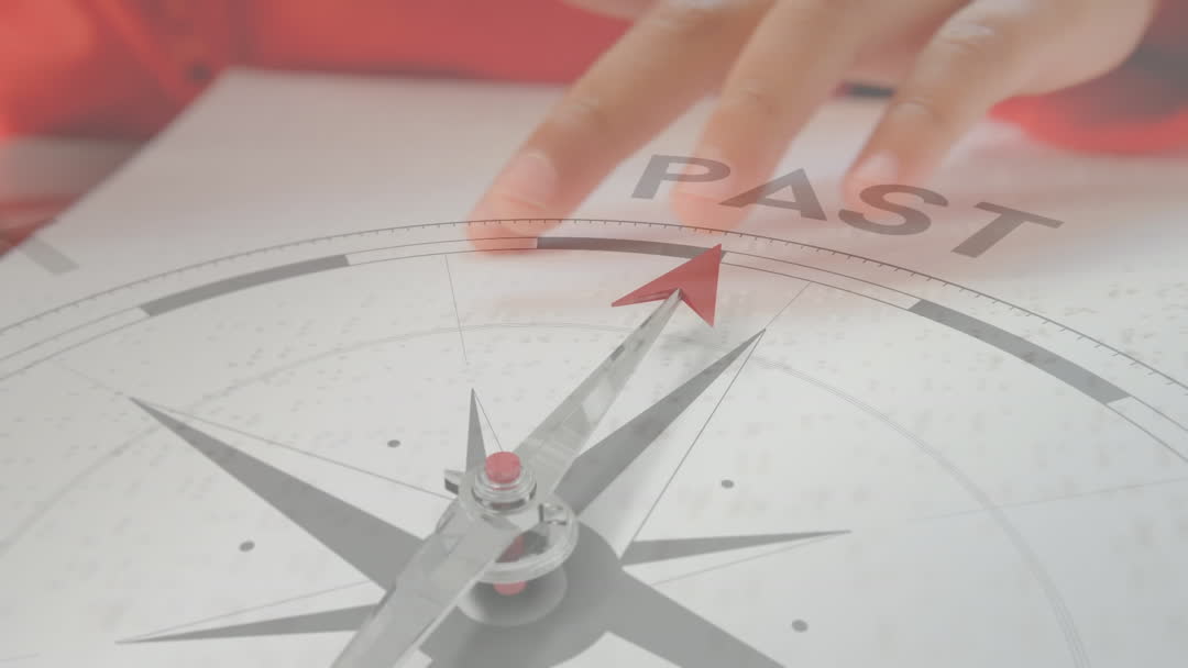 Shows a child's hand touching Braille while a compass with the word 'past' appears superimposed. Combines themes of exploration, learning, and curiosity in education for visually impaired students. Useful for nonprofit education materials and advocate awareness campaigns.