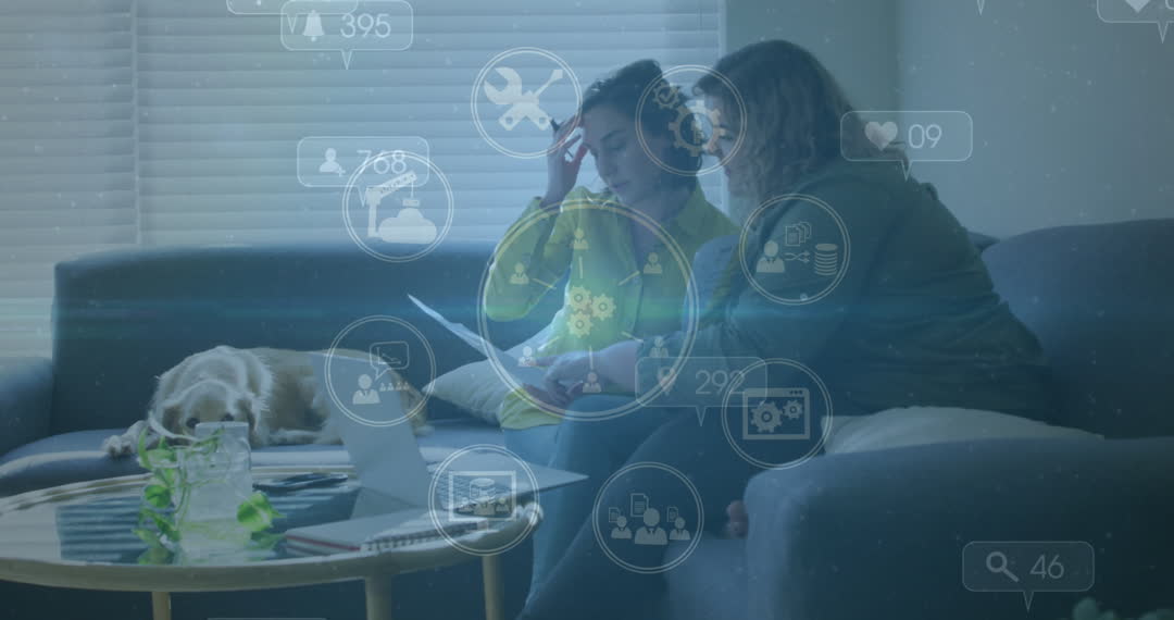 - Lesbian Couple Relaxing at Home, Engaging with Digital Media