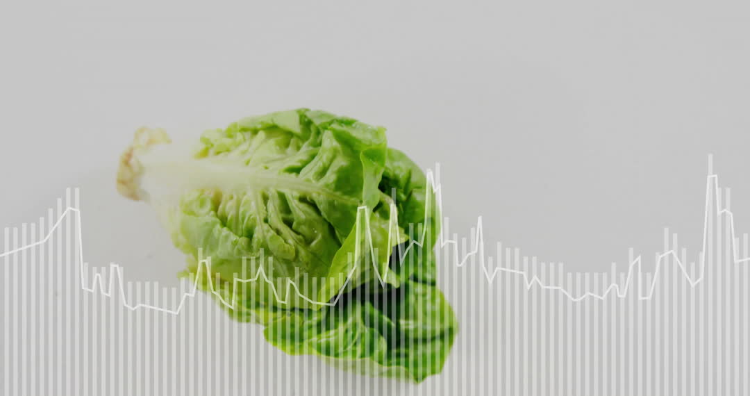 The video depicts lettuce overlain with animated data processing visuals on a white background, offering a fusion of technology and agriculture. This can be used to illustrate concepts in smart farming, agrotech innovations, or market analytics for fresh produce. It's ideal for articles or features on advancements in the agricultural sector.