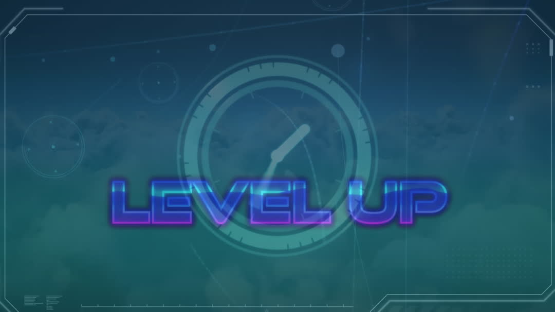 Visual representation of leveling up in gaming or achieving a milestone. Use for gaming intros, progress trackers, or inspirational content.