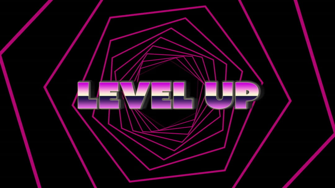 - Level Up Text in Neon Pink Hexagon Tunnel