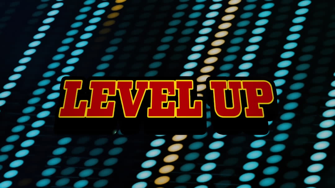 - Level Up Text Overlay on Digital Lighting Effects Background