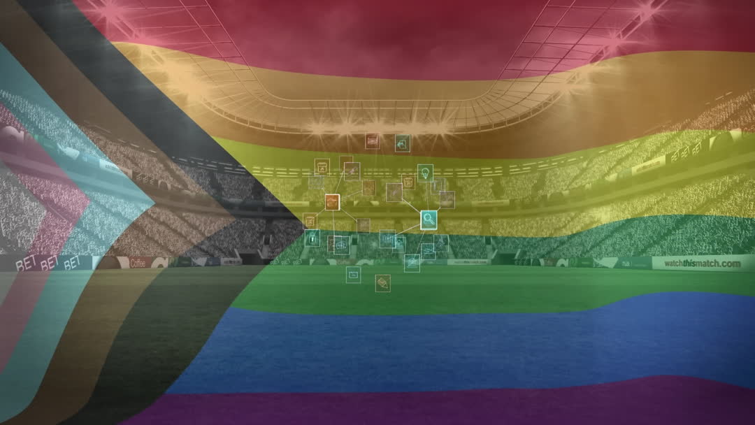 - LGBT Pride Flag Overlay on Soccer Stadium with Network Connections
