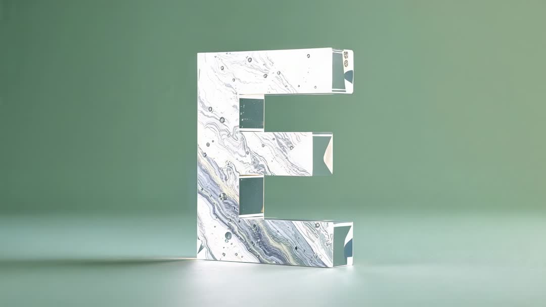 - Light Shifts on Glassy Letter E with Luminous Marble Reflection